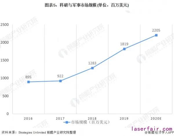 包括用于基礎研發的激光器,如大學和國家實驗室;以及用于新興和現有軍事應用的激光器,如測距儀、照明器、紅外對抗和定向能武器研究。